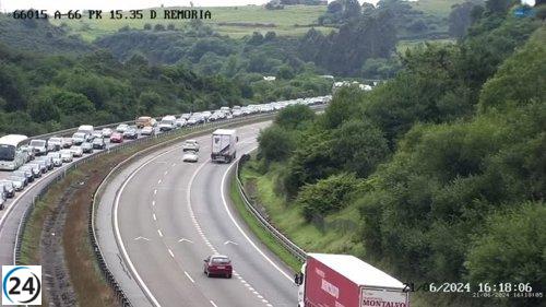 Accidente múltiple en la A-66 causa largas retenciones y tres personas heridas